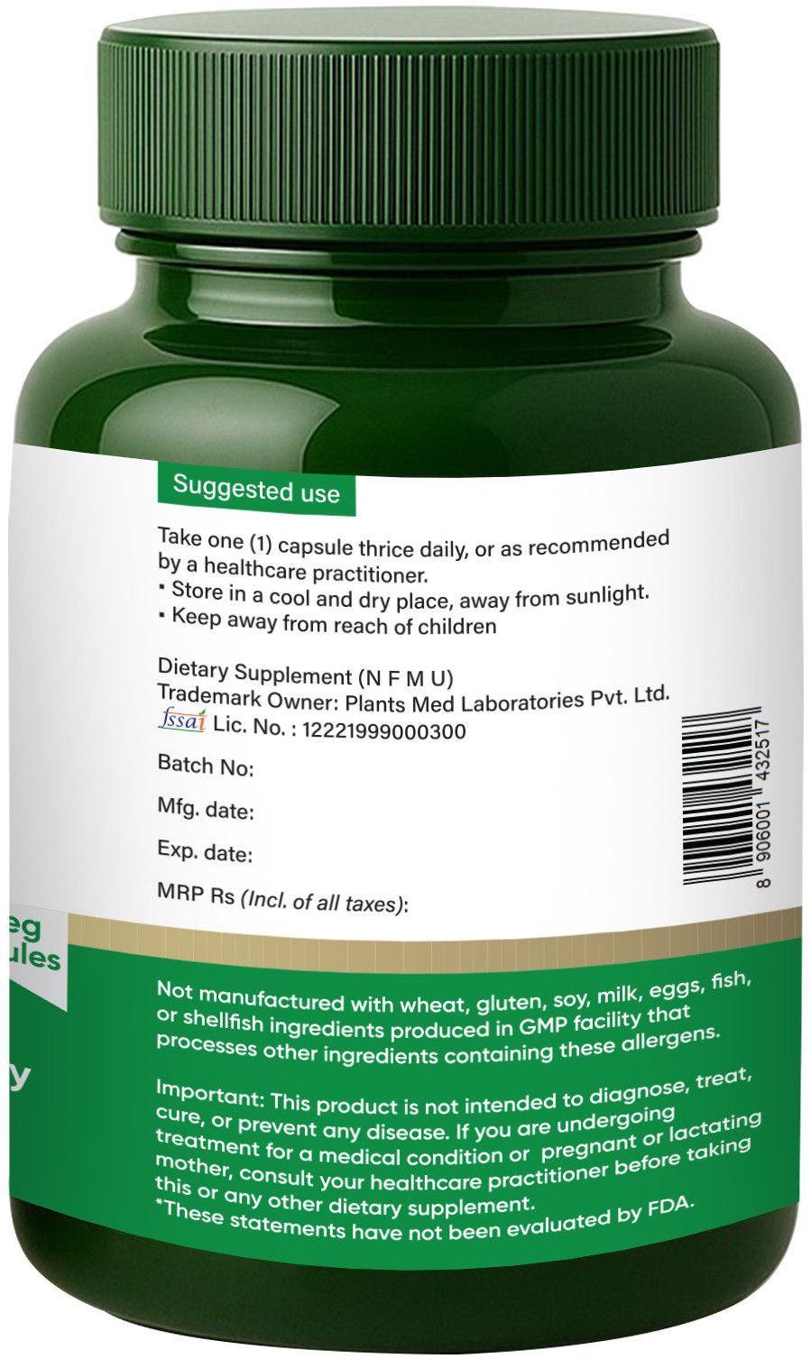 Availability : 60 vegetarian/Hard gelatine capsules packed in HDPE bottle