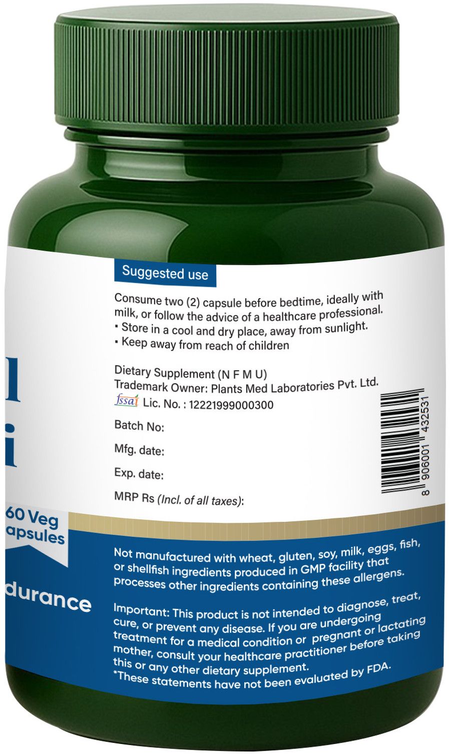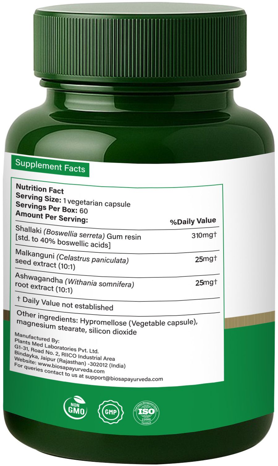 Availability : 60 vegetarian capsules packed in HDPE bottle