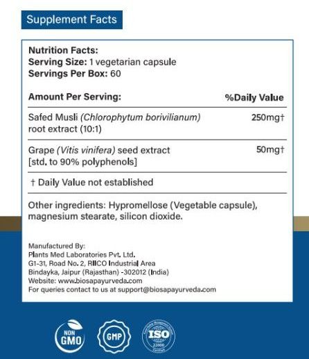 | Key Ingredients | Shilajit,Kaunch,Gokhru,Shatavari,Vidarikand,Talmakhana,Polyphenol Complex |
