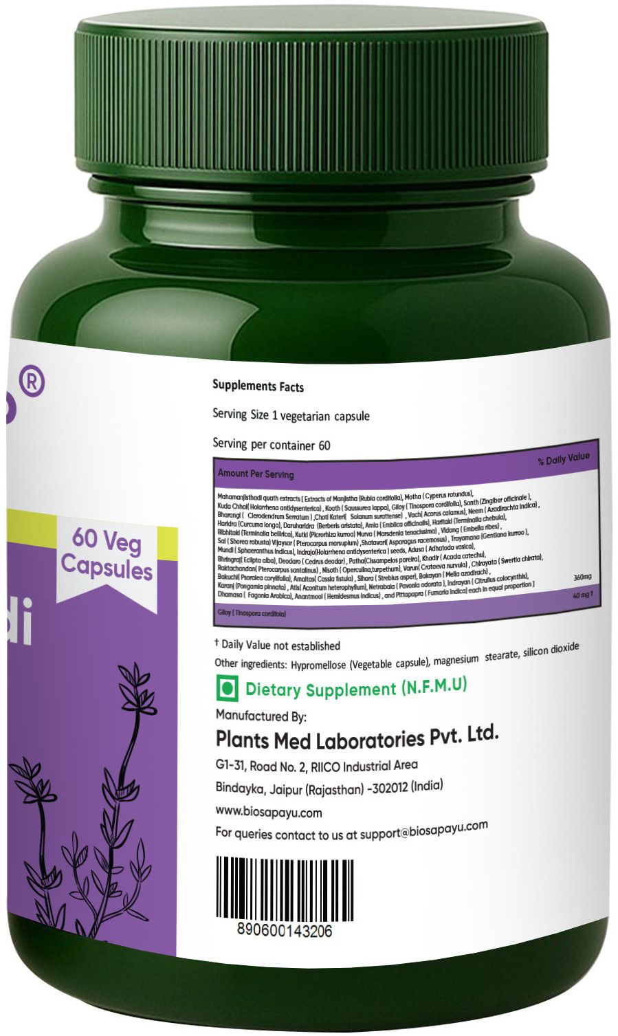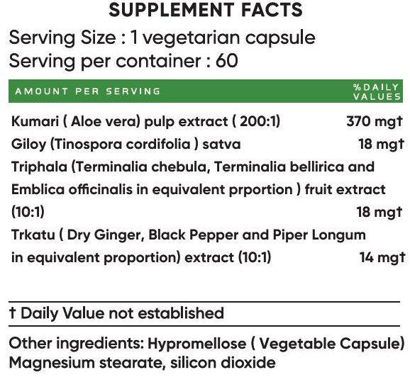 Daily Detox Support — Backs the body’s natural detox workload with bitters and rasayana herbs, helping you feel lighter after rich meals while supporting bile flow, oxidative balance, and calm digestion through the week.