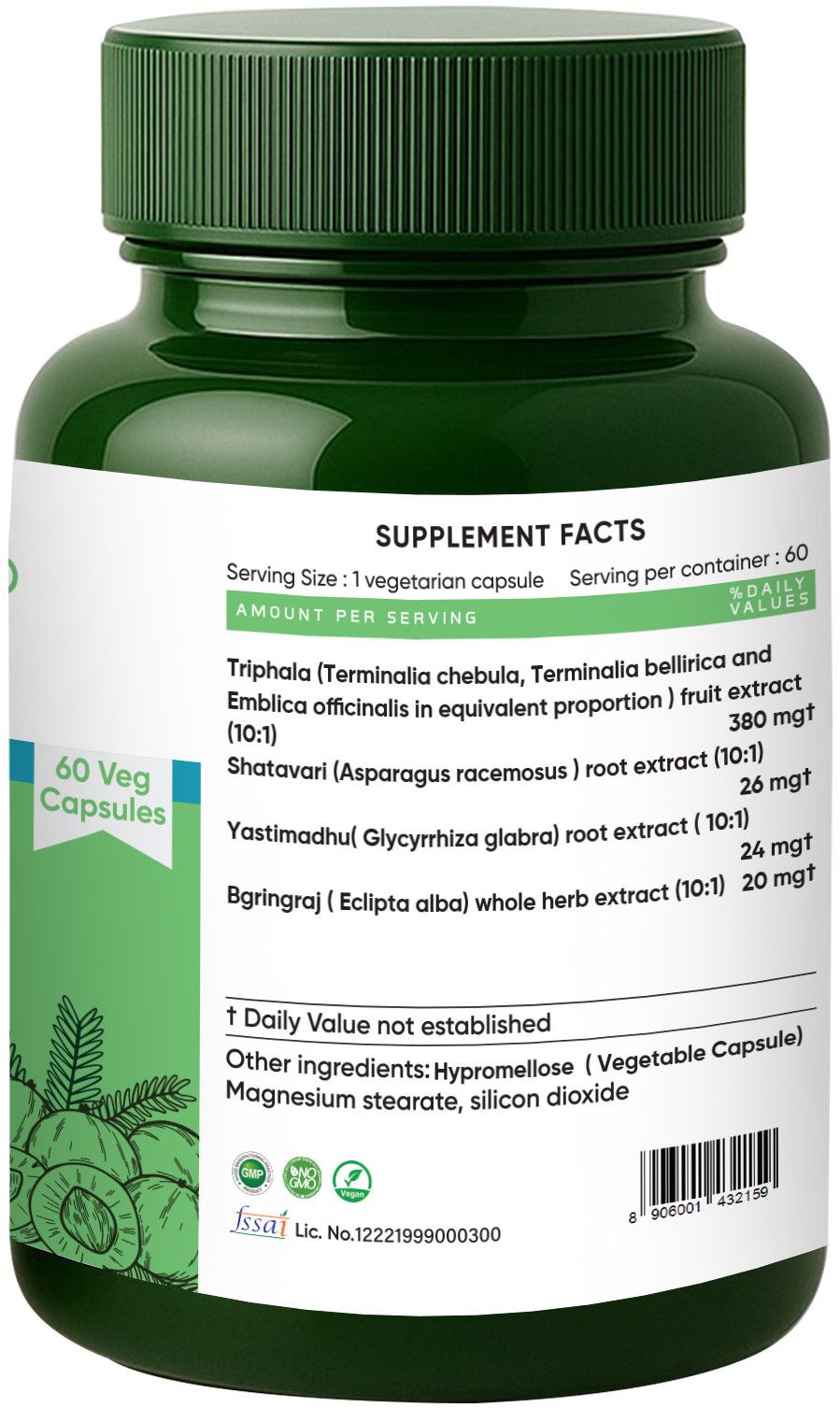 Triphala: Gentle daily elimination; antioxidant harmony for gut–skin balance.