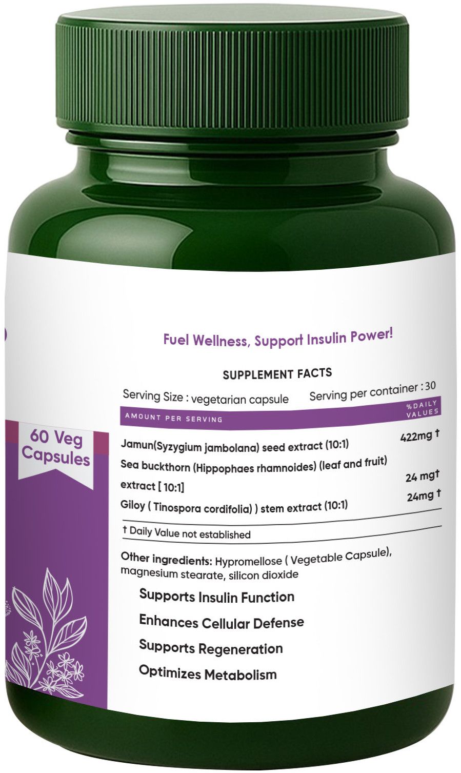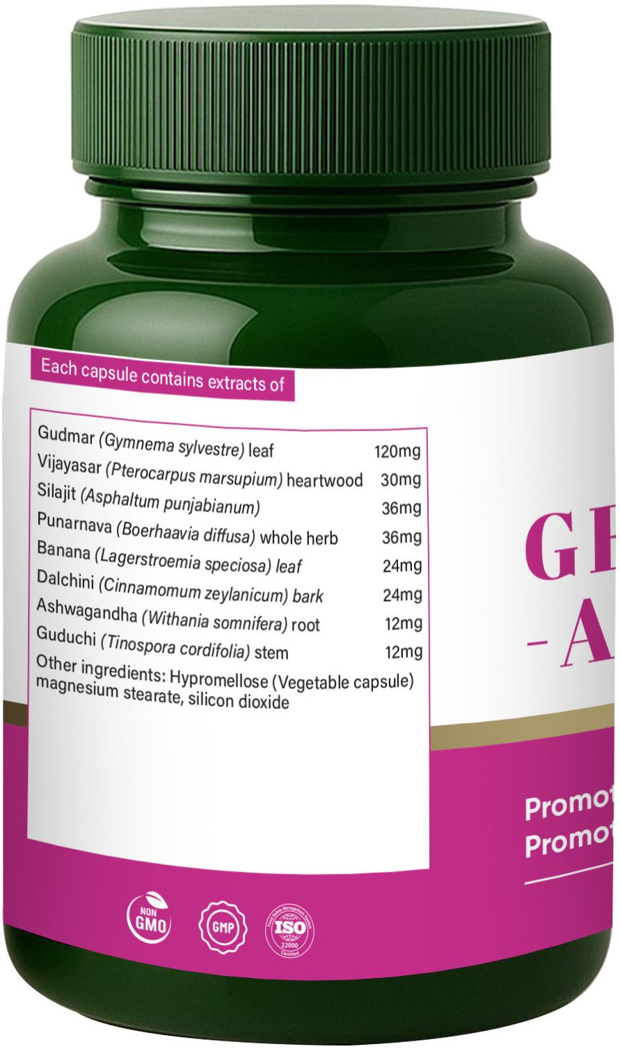 Take 1 capsule twice daily after meals with water. Maintain protein at each meal, fibre, hydration, and 7–10k steps.