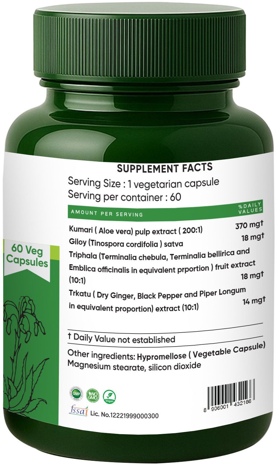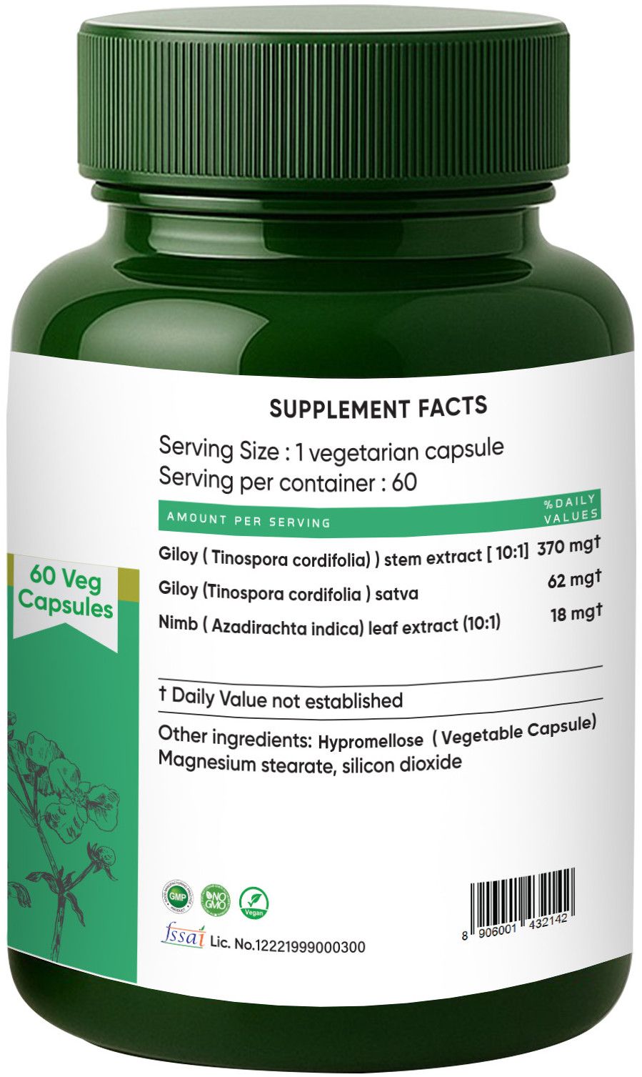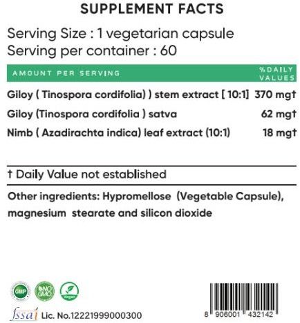 • Giloy (Tinospora cordifolia): Rasayana support for immune tone and oxidative balance; helps maintain resilience during routine metabolic stress.