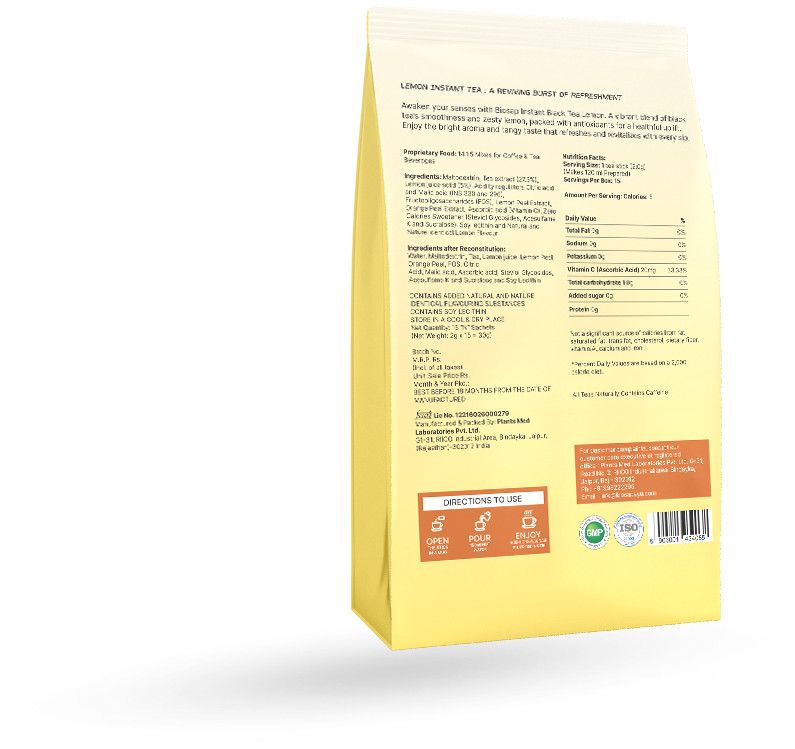 | Ingredients | Lemon,Black Tea, Lemon Juice Solids, Orange Peel, Vitamin C, FOS,Maltodextrin, Soy Lecithin |