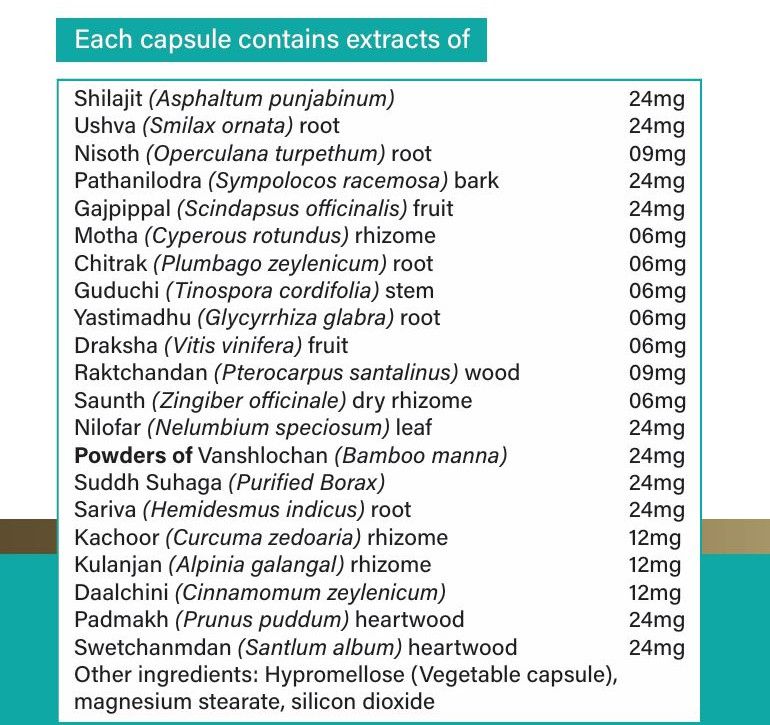 Purified Shilajit, Sariva, Kachur, Kulanjan, Cinnamon,Herbal Ingredients